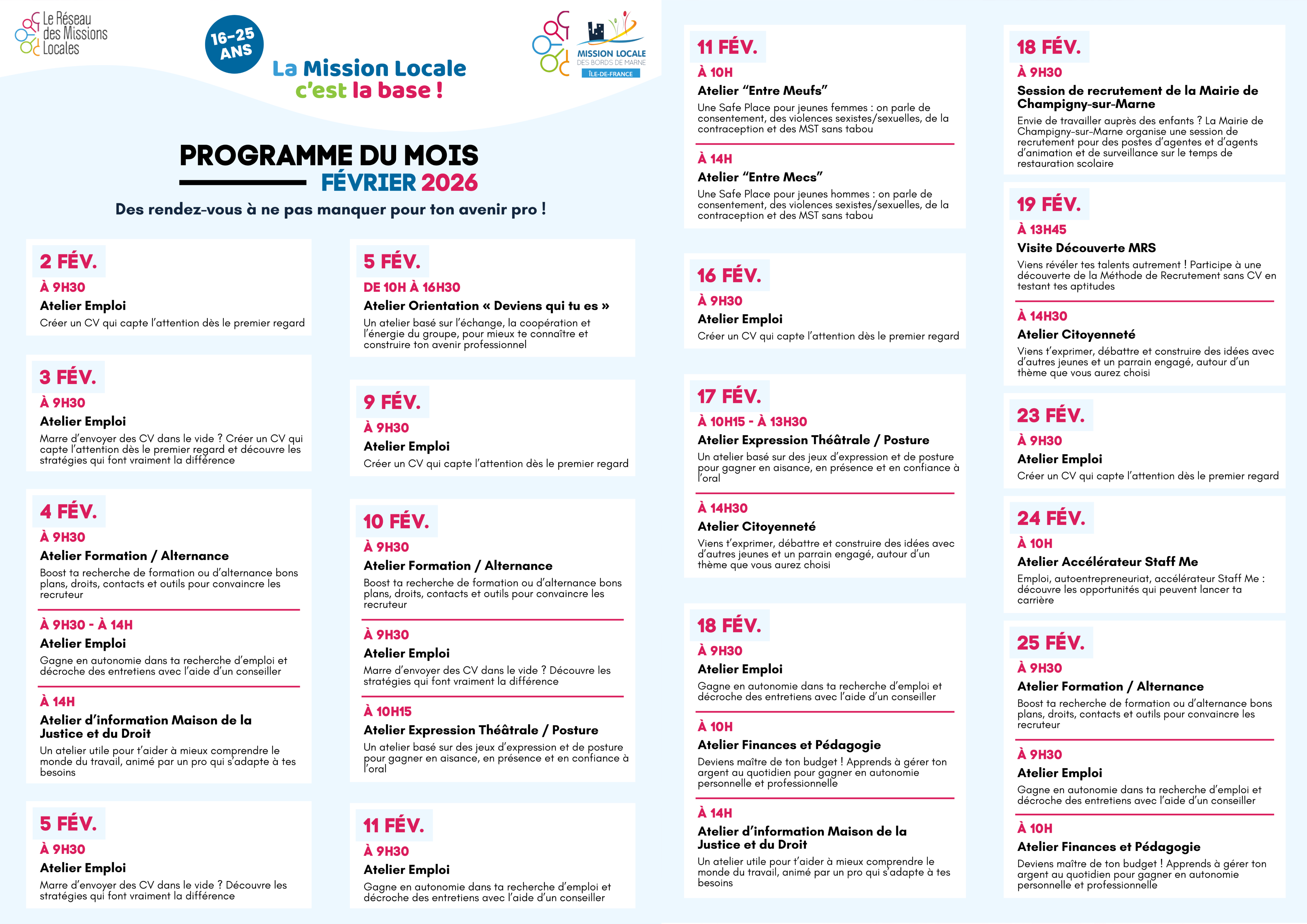 Programme du mois de Février